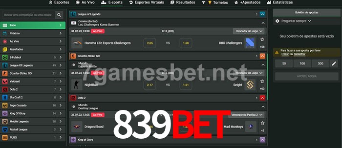 O 839Bet oferece uma grande seleção de opções de apostas em e-sports com probabilidades competitivas
